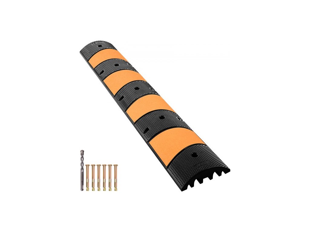 Hmotnost položky (kus): 59 liber / 26,8 kg, Množství: 1 ks, Barva: Černá + Žlutá, Velikost produktu: 72,8"D x 12,2"Š x 2,2"V / 185 x 31 x 5,5 cm, Velikost jednoho kanálu: 3,2 cm Š x 4,1 cm V / 7,6 cm x 10 cm,Model: VV-GXB-JSD 72YC 1 ks, Nosnost: 22 000 liber / 9 980 kg, Kanál: 2, Materiál: Recyklovaná guma