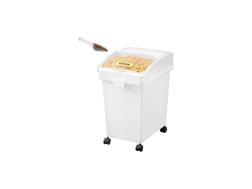 VEVOR Nádoba na ingredience, objem 20,8 l, nádoba na mouku z PP materiálu na kolečkách, bílá police, nádoba na ingredience s naběračkou a posuvným víkem, komerční skladovací nádoby, sada 3 ksVelká kapacita