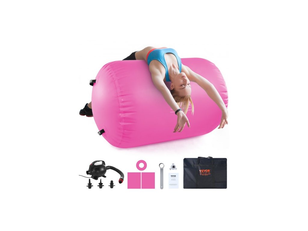 VEVOR Nafukovací podložka, vzduchová podložka, kulatý nafukovací vzduchový válec, gymnastické vybavení s elektrickým čerpadlem, omílací trenažér pro domácí použití/posilovnu/jógu/roztleskávání/pláž/park/vodu, růžováVysoce kvalitní nafukovací airtrack