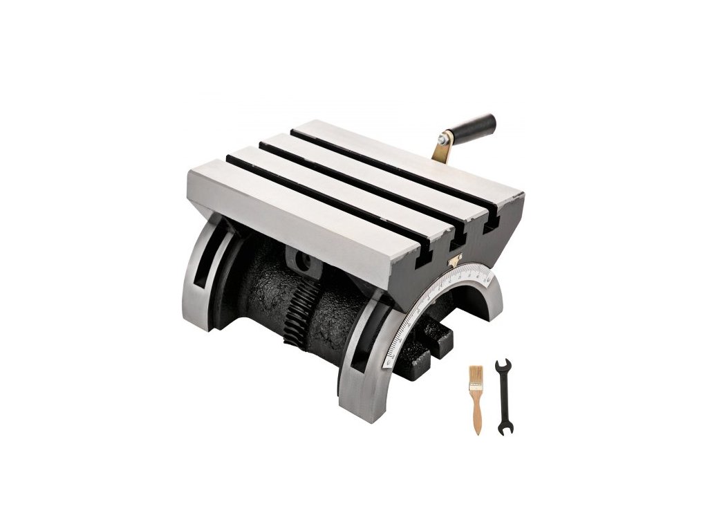 Rozsah naklápění: 0-40 stupňů (na obě strany), Šířka T-drážky: 2/5 palce (12 mm), Celkový rozměr: 10x7x5 palců (250x180x133 mm), Celková hmotnost: 16 kg,Materiál: Litina