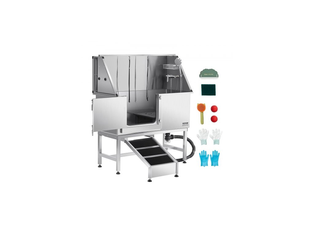VEVOR Nerezová mycí stanice pro psy, vana na stříhání zvířat 127 cm s rampou, PE filtrační deska na vodu, kohoutek a sprchová hlavice a držák na mýdlo, psí vana pro velké, střední a malé domácí mazlíčky (levé dveře)
