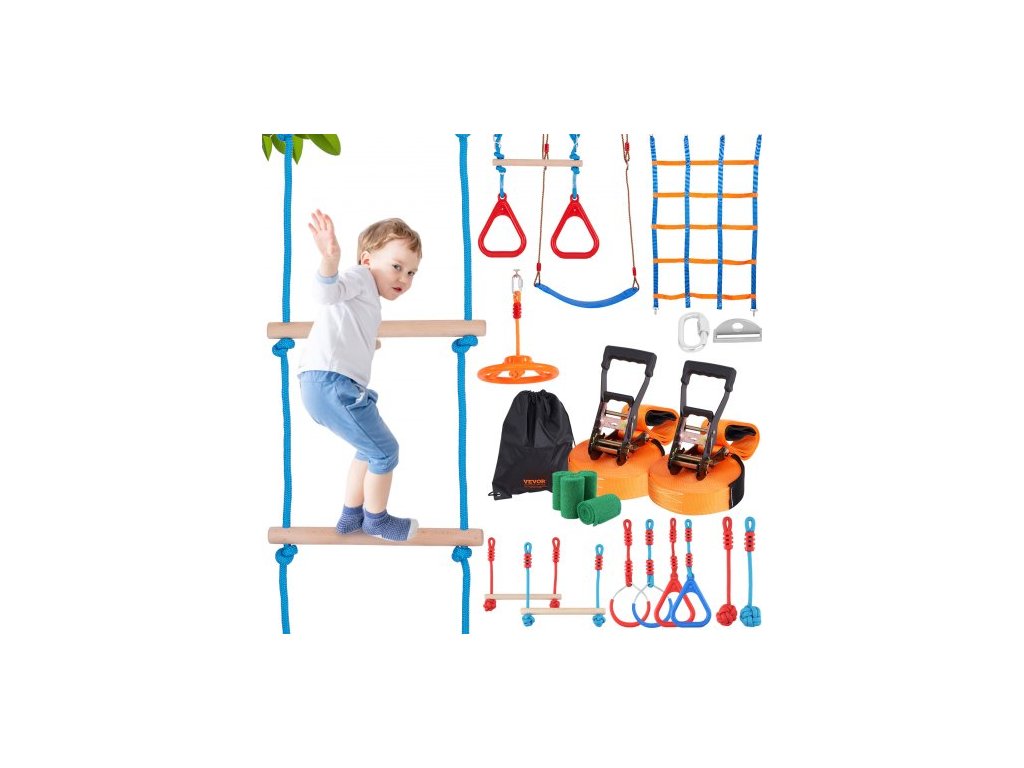 VEVOR Ninja Warrior překážková dráha pro děti, 2 x 60 stop odolné proti povětrnostním vlivům slackline, nosnost 500 liber, lano pro opice, venkovní herní sada, hračky na zahradu, tréninkové vybavení se 14 překážkamiRůznorodé scénáře použití