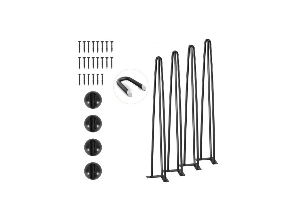 VEVOR Nohy stolu s vlásenkami 0,7 m, sada 4 ks, nosnost 408,2 kg, nohy stolu s vlásenkami 3 tyče pro židle, lavice, jídelní koncový stolek, masivní uhlíková ocel, odolné nohy nábytku, černé