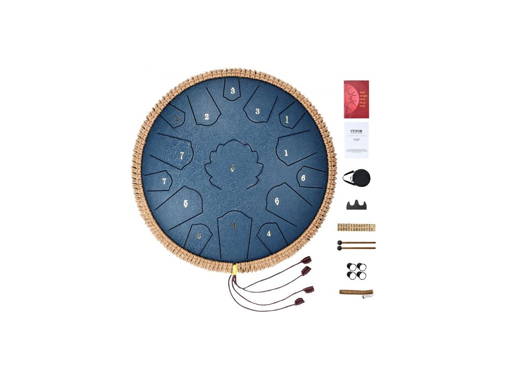 VEVOR ocelový buben s jazýčkem, 14 palců a 15 not, dešťový buben pro venkovní zahradu, tónina C dur, tankový buben se 2 paličkami a přepravní taškou, ruční pan buben bicí nástroj pro hudební výchovu a jógu, tmavě modráZbavte se stresu