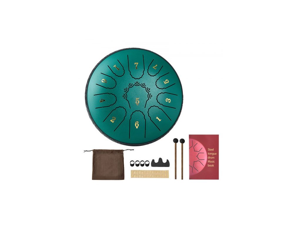 VEVOR ocelový bubínek s jazýčkem, 16,5 cm, 11 tónů, dešťový bubínek pro venkovní zahradu, hudební bubny D dur s notovou knihou a paličkami, bicí nástroj pro meditaci, jógu, hudební vzdělávání pro začátečníky, zelený