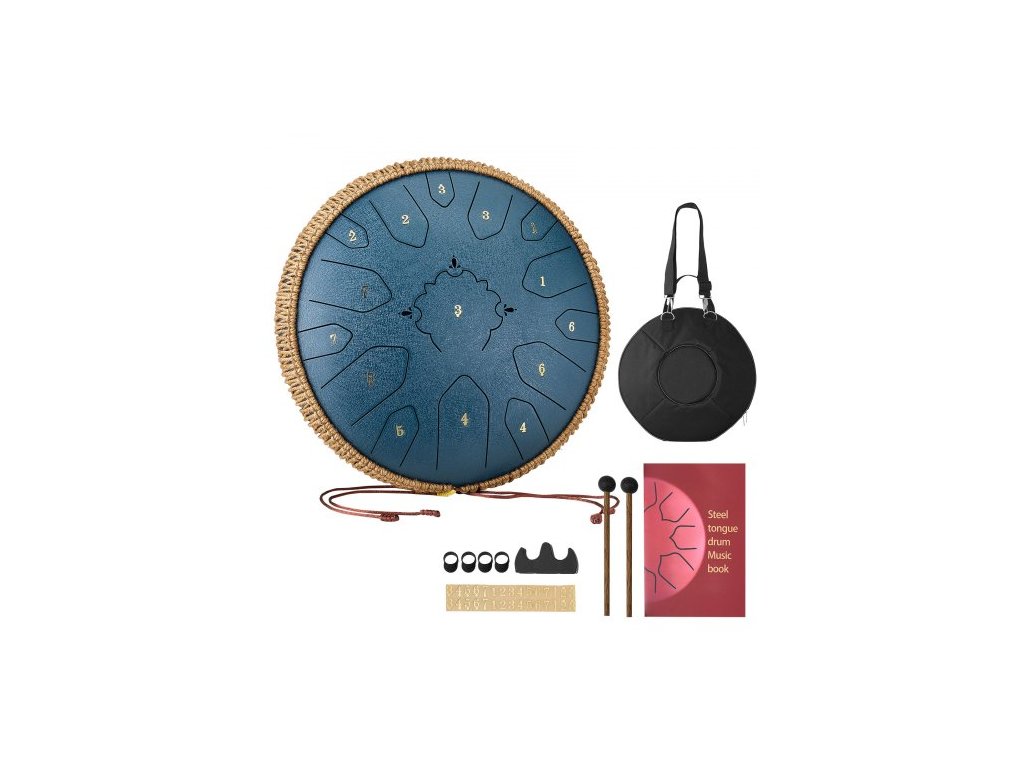 VEVOR ocelový bubínek s jazýčkem, 33cm 15 notový dešťový bubínek pro venkovní zahradu, hudební bubny C dur s notovou knihou a paličkami, bicí nástroj pro meditaci, jógu, hudební výchovu pro začátečníky, tmavě modrá
