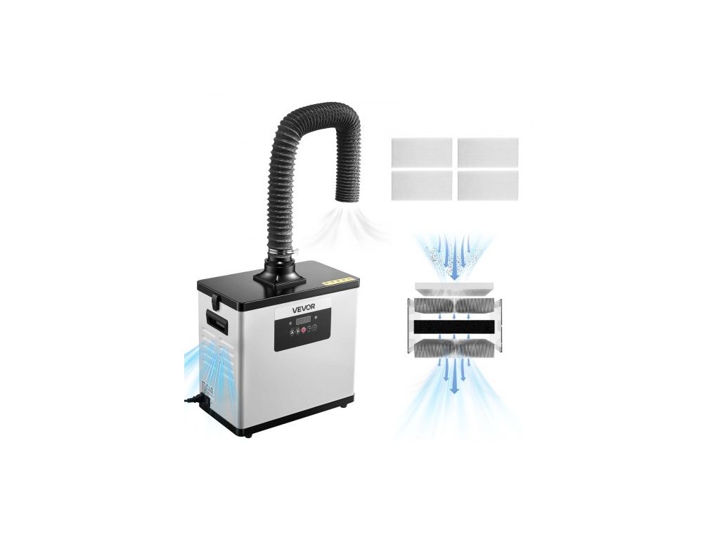 VEVOR odsávač pájecích výparů, vylepšený 4stupňový filtrační absorbér pájecího výparu se silným sáním 510 m³/h, 10 rychlostí a dálkovým ovládáním, bezkartáčový odsávač kouře pro laserové gravírování, 3D tiskPlechové pouzdro
