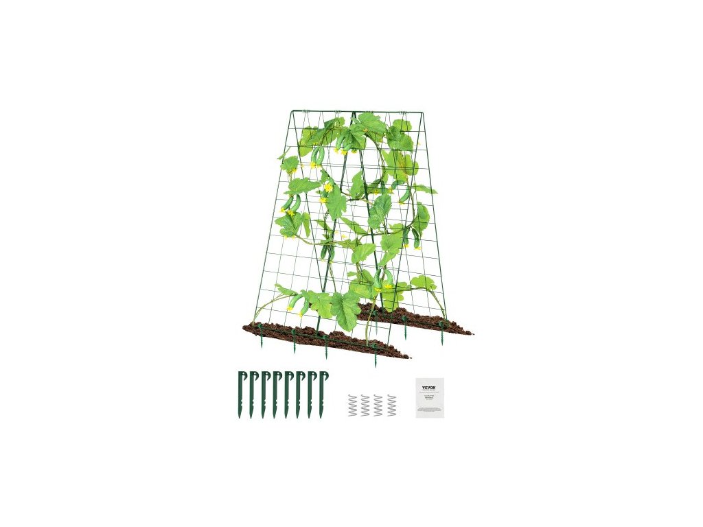 VEVOR Okurková treláž pro popínavé rostliny, skládací sada okurkových trelážů 46" x 32" s klipy na rostliny, kovová zahradní treláž pro vyvýšený záhon, venkovní opora pro pěstování rajčat, dýní, zeleninyA-rámová okurková treláž