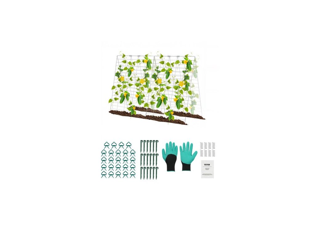 VEVOR Okurková treláž pro popínavé rostliny, skládací sada okurkových trelážů 91 x 147 cm s klipy na rostliny, kovová zahradní treláž pro vyvýšený záhon, venkovní opora pro pěstování rajčat, dýní a zeleninyA-rámová okurková treláž