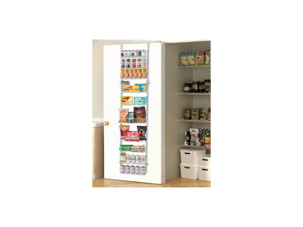 VEVOR Organizér na spíž přes dveře, 10patrový organizér a úložný prostor na spíž, odolný ocelový závěsný stojan na koření, nastavitelné nástěnné police na koření, pro domácí kuchyň, prádelnu, koupelnu, bílý