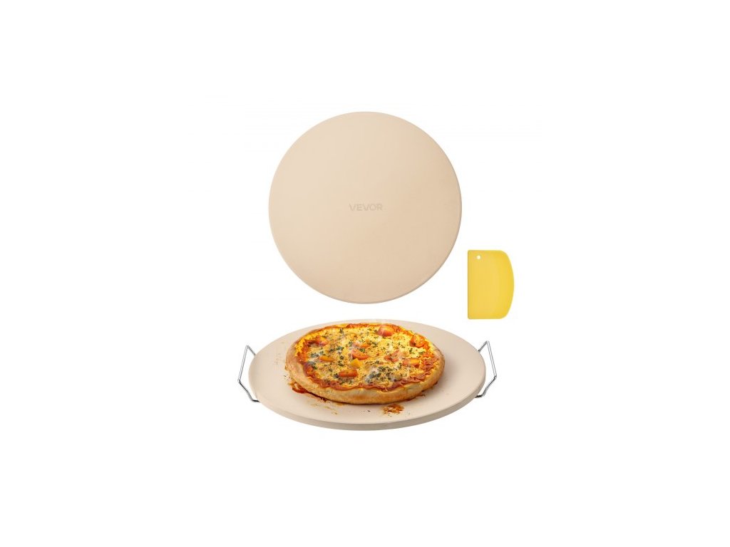 VEVOR Pizza kámen, kulatý kordieritový pizza kámen o průměru 406 mm, extra velký pečící kámen s odolným stojanem, tloušťka 17 mm, žáruvzdorný kuchyňský kordierit, do kuchyňské trouby, pečení pizzy, grilování BBQVylepšené výsledky pečení