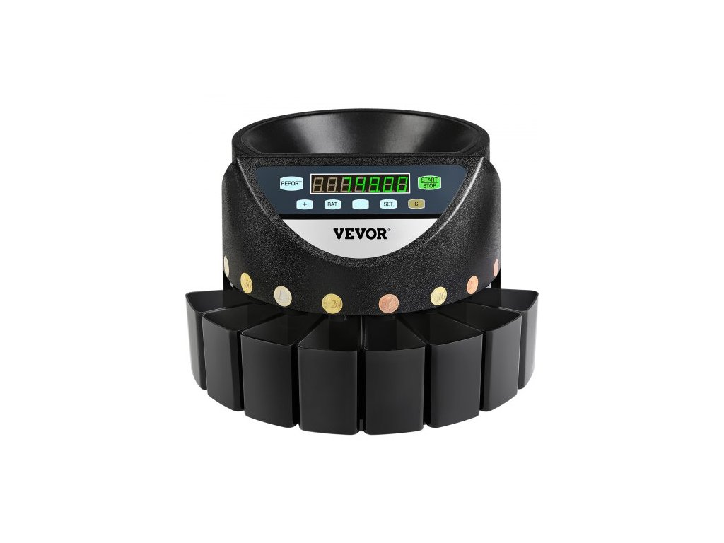 VEVOR Počítadlo euromincí, třídič 500-1000 mincí, elektronický automatický počítání mincí EUR, 300 mincí za minutu s 8 zásuvkami na mince pro školní obchod, bankuPřesnější třídění