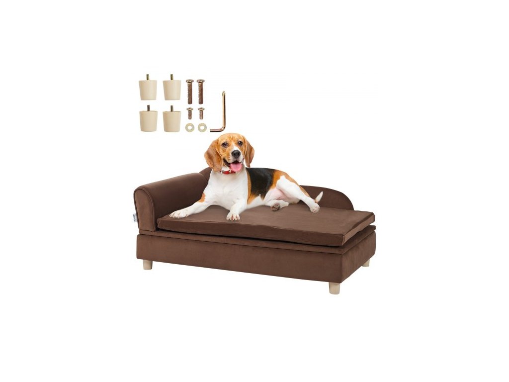 VEVOR Pohovka pro domácí mazlíčky, Pohovka pro psy pro velké psy a kočky, Měkká sametová pohovka pro psy, 110 lb Nakládací pohovka pro kočky, tmavě hnědáSametová tkanina