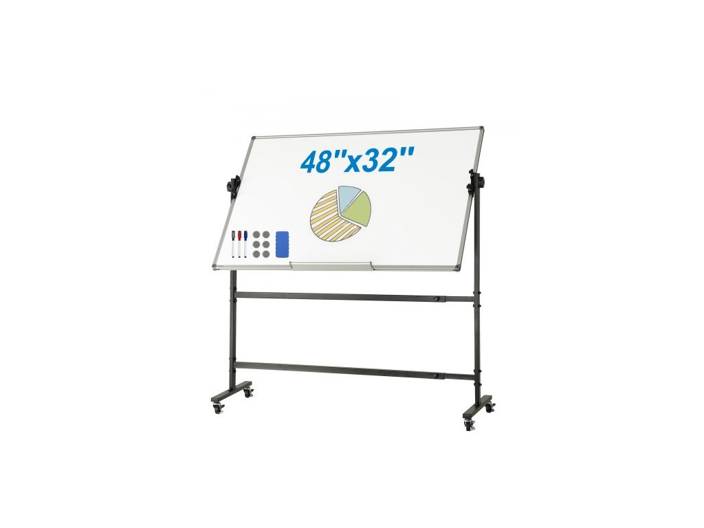 VEVOR Pohyblivá bílá tabule, 48x32 palců, oboustranná magnetická mobilní bílá tabule, 360° otočná, nastavitelná výška, tabule pro suché mazání s kolečky a pohyblivým zásobníkem pro kancelářskou školu