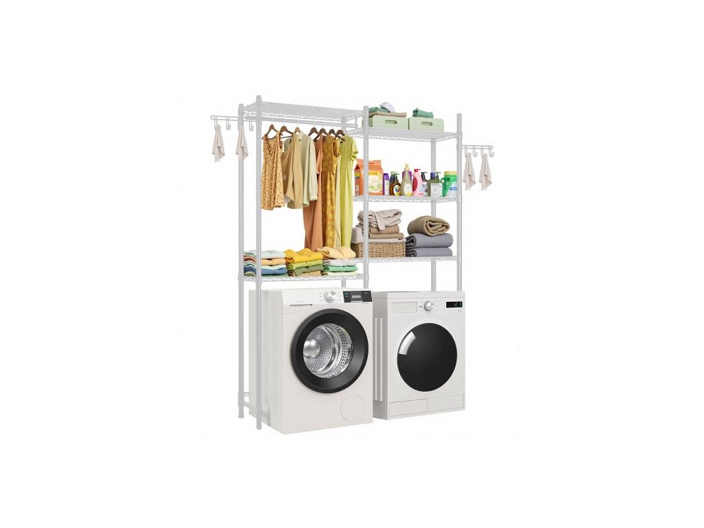 VEVOR Police nad pračku a sušičku, 5patrové sušáky do prádelny s tyčí a háčky, dvě řady nastavitelných polic do pračky, šetří místo, pro úložný prostor a organizaci v prádelně, bíléZvětšení úložného prostoru