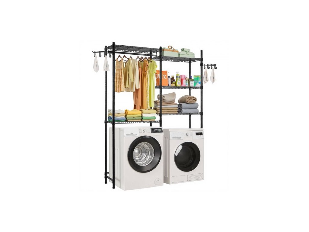 VEVOR Police nad pračku a sušičku, 5patrové sušáky do prádelny s tyčí a háčky, dvě řady nastavitelných polic do pračky, šetří místo, pro úložný prostor a organizaci v prádelně, černéZvětšení úložného prostoru