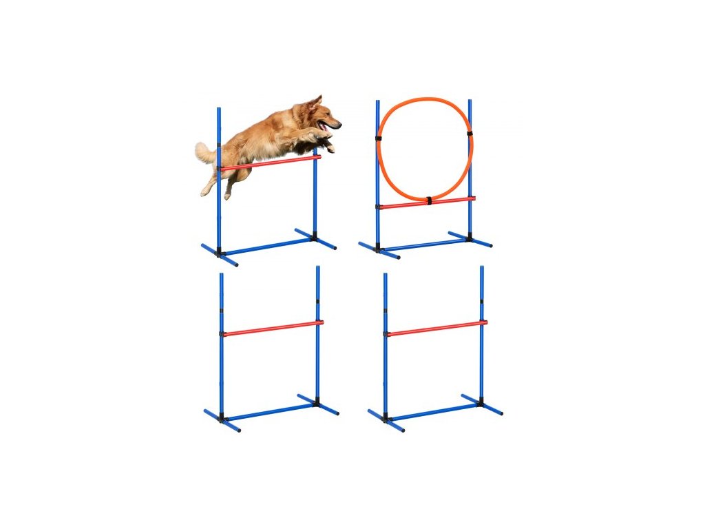 VEVOR Pomůcky pro výcvik psů v agility, sada 4 dílů - nastavitelné vysoké překážky a skákací kruh, startovací sada pro štěňata s tyčemi, úložný vak na zahradu, do interiéru i exteriéruVšestranná tréninková sada