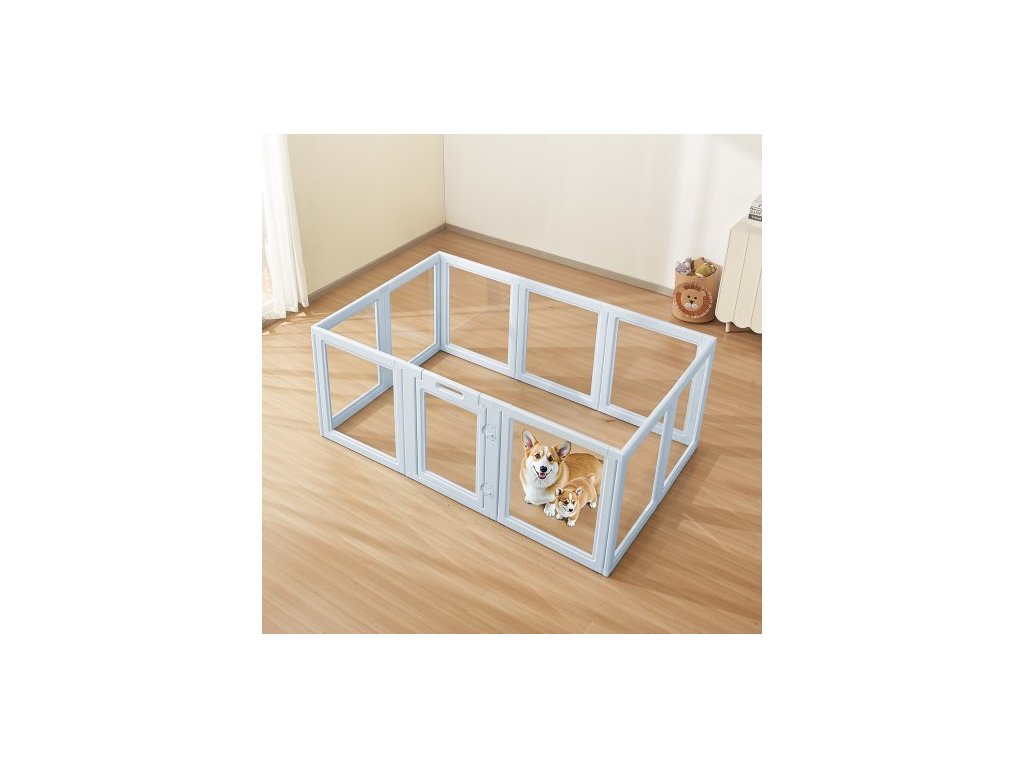Rozměry produktu: 1930 × 1245 × 765 mm / 76,00 × 49,02 × 30,12 palce, Množství panelů: 10 ks, Hmotnost produktu: 17,5 kg / 38,58 liber, Barva produktu: Modrá, Vhodné pro: Velké psy,Číslo modelu položky: SSPTDWB-02, Materiál: PE rám, PET panely, ABS konektory, TPE přísavky, Styl: s okny