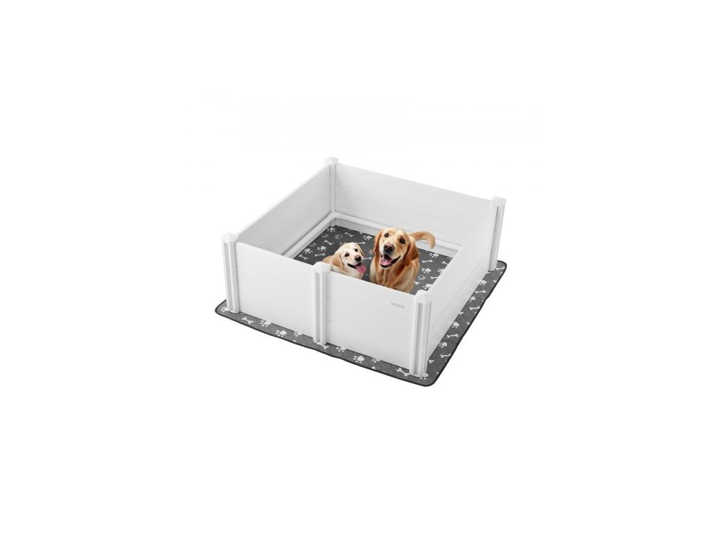 VEVOR Porodní box pro psy, 48 x 48 x 18,1 palce, plastový PVC ohrádka pro štěňata s výškově nastavitelnými dvířky a omyvatelnou podložkou na močení, antideformační vnitřní ohrádka pro štěňata velkých plemen, mléčně bíláVnitřní porodní box