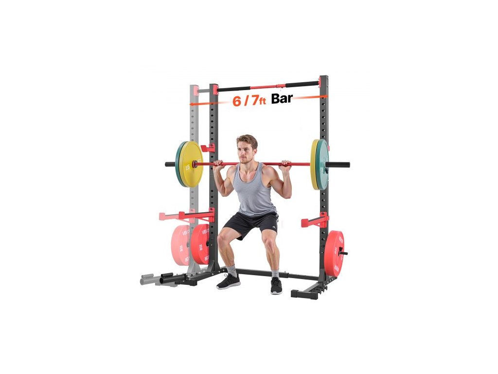 VEVOR Power Cage Rack, multifunkční stojan na dřepy do domácí posilovny, silový trénink s nastavitelnou šířkou a 6 kolíky, úchytem na nášlapné miny a bezpečnostními tyčemi pro bench press, dřepy a shyby