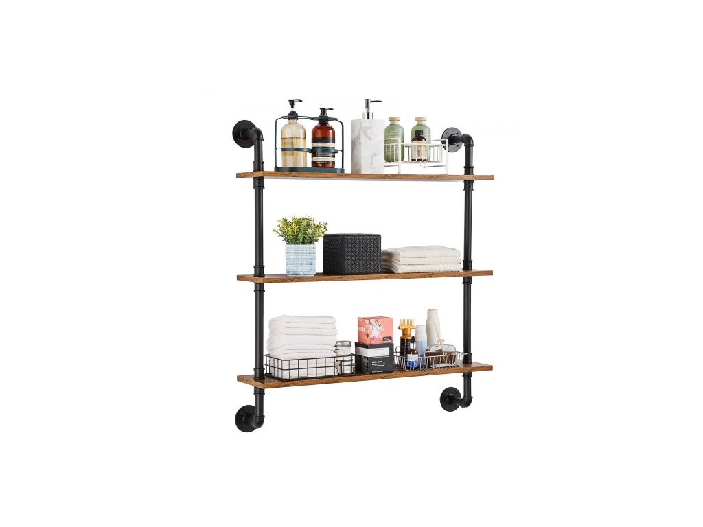 VEVOR Průmyslová trubková police, 3 úrovně, 32x7,87 palce, nástěnná plovoucí rustikální dřevěné police, držák na knihy, úložný stojan, držák na drobnosti do kuchyně, ložnice, koupelny, obývacího pokoje, černáOdolné proti korozi a odolné