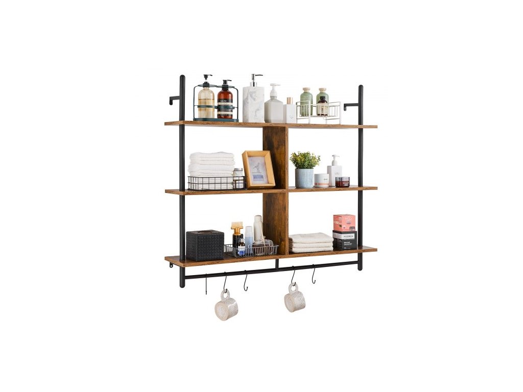 VEVOR Průmyslová trubková police, 3 úrovně 41,5x9,84 palce, nástěnná plovoucí rustikální dřevěné police, držák na knihy, úložný stojan, držák na drobnosti do kuchyně, ložnice, koupelny, obývacího pokoje, černá