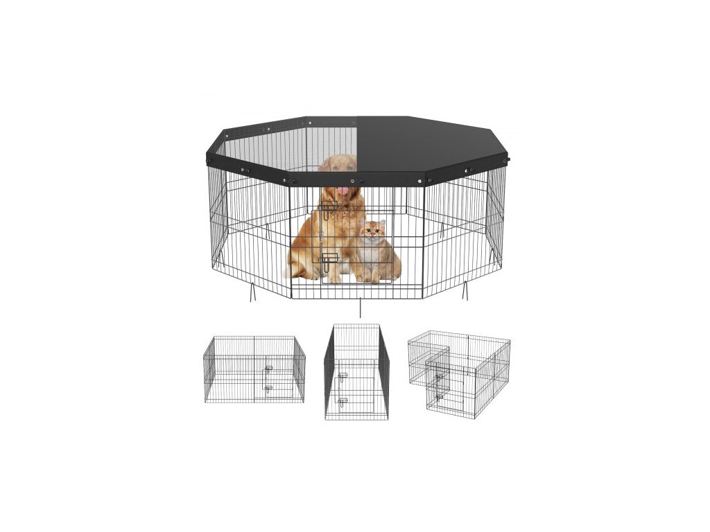 VEVOR Psí ohrádka, 8dílná skládací kovová ohrada pro psy s horním krytem, 24" H plot pro domácí mazlíčky, klece pro štěňata s kolíky do země, vnitřní a venkovní ohrada pro psy pro malá a střední zvířata, pro kempování, na zahradu24" nastavitelná kovová ohrádka pro domácí mazlíčky