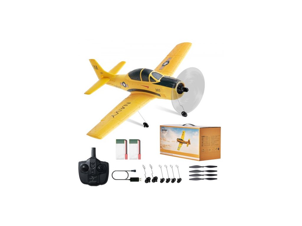 VEVOR RC letadlo, 2,4 GHz 4kanálové letadlo na dálkové ovládání s 6osým gyroskopickým stabilizátorem, připravené k letu, cvičné letadlo, hračka s 2 bateriemi, snadno ovladatelný RC kluzák pro dospělé, děti, začátečníky, chlapce