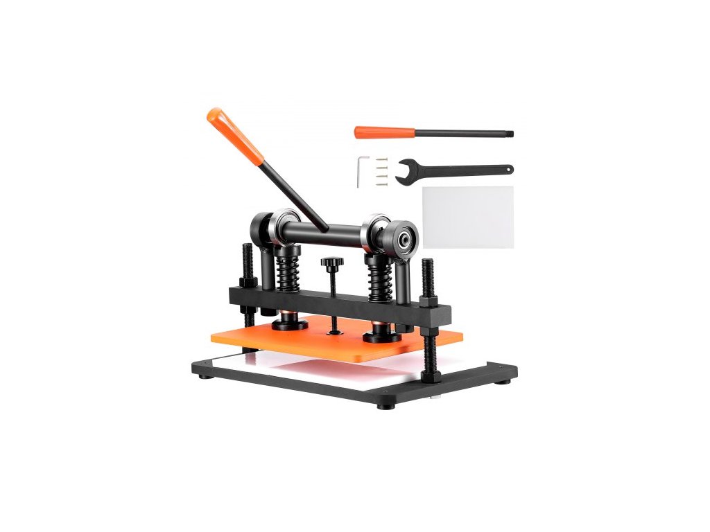 VEVOR řezací stroj na kůži, 14,2 x 10,2 palce, ruční vysekávací stroj na razicí desku, 0,47 palce lis na kůži s tlakovým zdvihem, vysekávací stroj se dvěma vodícími hřídeli pro různé materiályProstorný Design