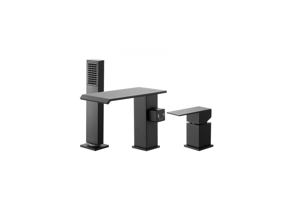 VEVOR Římská vanová baterie, 3otvorová vodopádová vanová baterie, sada římských vanových baterií se sprchovou hlavicí a 1 rukojetí, sada vanových baterií pro koupání dospělých, matná černá, dvojité možnosti průtoku vody