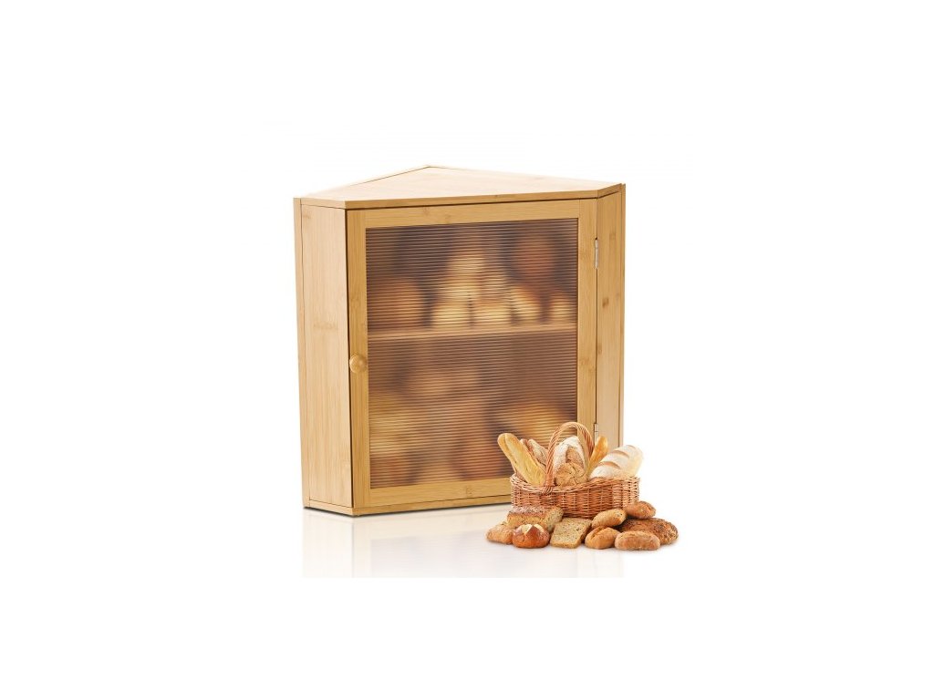 VEVOR rohový chlebník na kuchyňskou linku, dvouvrstvý velkokapacitní bambusový úložný box na chléb, farmářský dřevěný chlebník na domácí chléb, úložný držák s akrylovými vlnitými dvířky, přírodníRohový dvouvrstvý chlebník na kuchyňskou linku