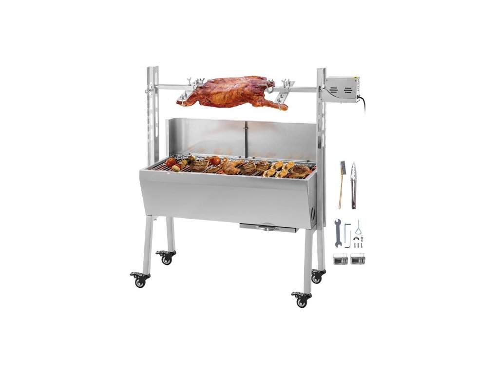 VEVOR Rotisserie Grill 60 KG/132 LBS BBQ Rotisserie Grill s přepážkou, gril na dřevěné uhlí, 25W dřevěné uhlí, jehněčí rožeň, gril na prasata, venkovní piknik, kempování