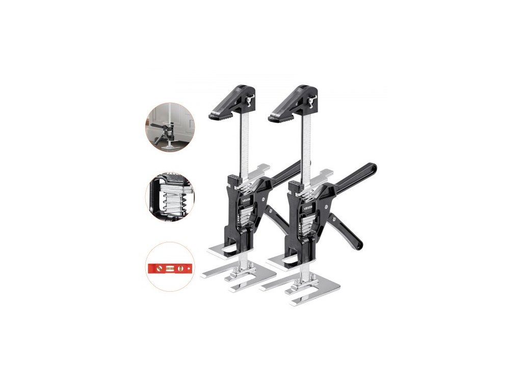 VEVOR Ruční zvedák, 2 ks, nosnost 150 kg, zdvih až 180 mm, kovový ruční zvedák s magnetickou vodováhou, nastavitelná výška, pro dveře, okna, nábytek, zpracování dřeva, černýPostaveno pro dlouhou životnost