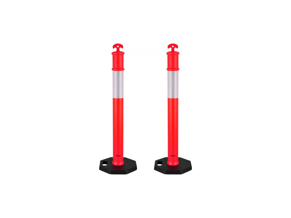 VEVOR Sada 2 dopravních směrovacích sloupků, 1140 mm bezpečnostní dopravní kužely se závažím na základně a reflexními proužky, odolné směrovací sloupky pro staveniště, parkoviště, kontrola davu, červené