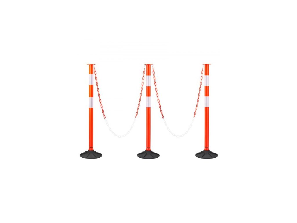 VEVOR Sada 3 dopravních směrovacích sloupků, bezpečnostní kužely 871 mm se závažím, reflexní proužky a řetěz, odolné směrovací sloupky pro staveniště, parkoviště, kontrola davu, červené