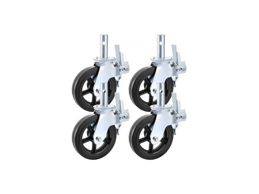 VEVOR Sada 4 otočných koleček s polyuretanovým železným jádrem o průměru 8 palců s dvojitou brzdou, nastavitelné nohy, nosnost 1100 liber na kolo