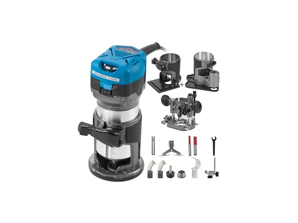 VEVOR Sada nástrojů na frézku na dřevo, elektrická ruční fréza, laminátor, fréza na dřevo, maximální točivý moment 710 W, 30 000 ot./min, proměnná rychlost, kompaktní sada frézek se 4 základnamiÚžasná odolnost