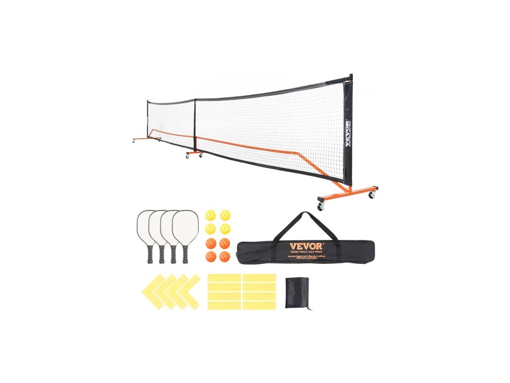 VEVOR Sada sítí na pickleball, přenosný systém na pickleball o délce 6,7 m s taškami, míčky, pálkami, kolečky a čarami kurtu, kovový rám odolný proti povětrnostním vlivům a PE síť, pro venkovní příjezdovou cestu na zahraduVelikost regulace