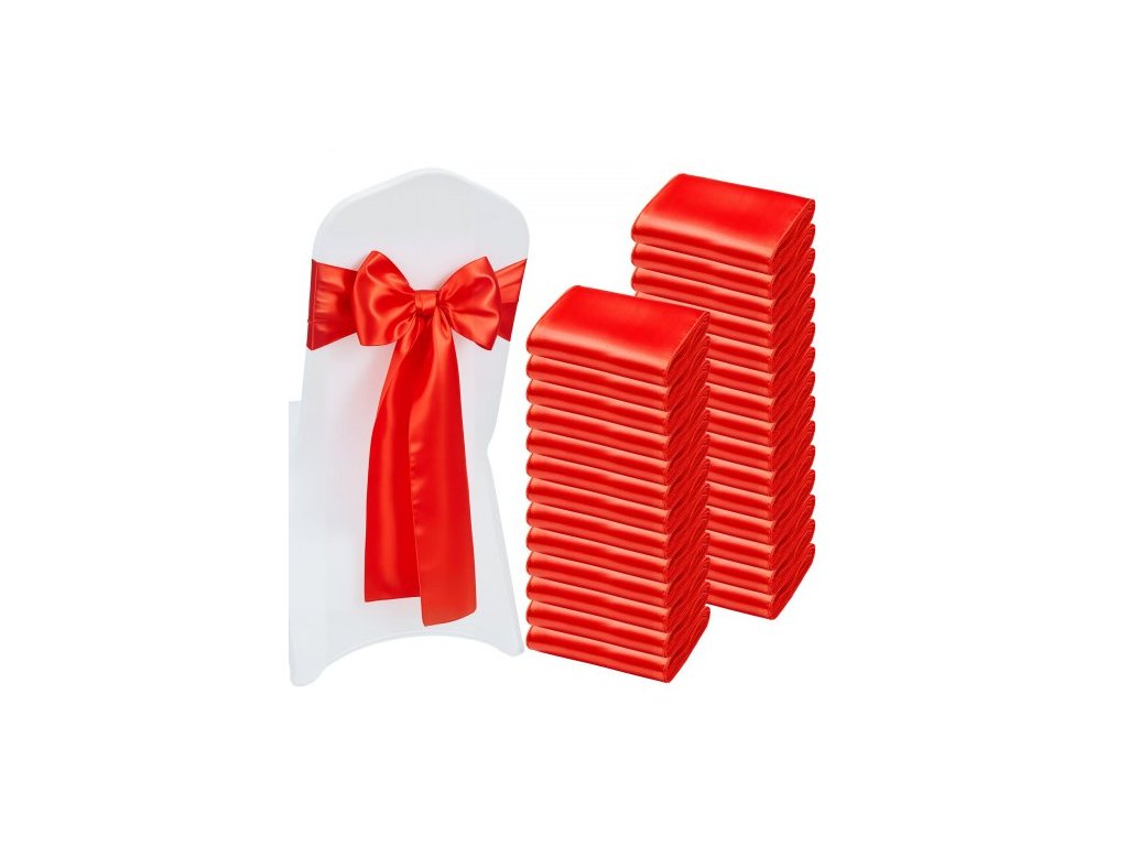 VEVOR Saténové mašle na židle, 100 ks stuh na židle, mašle na zadní stranu, 7 x 108 palců, červená svatební dekorace na hostinu, pro svatební obřad, oslavu narození miminka, večírek, banket, dekorace na židliJemné řemeslné zpracování