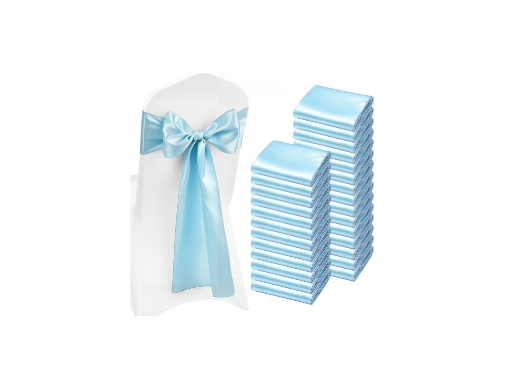 VEVOR Saténové mašle na židle, 100 ks stuh na židle, mašle na zadní stranu, 7 x 108 palců, světle modrá dekorace na svatební hostinu, pro svatební obřad, oslavu narození miminka, večírek, banket, dekorace na židliJemné řemeslné zpracování