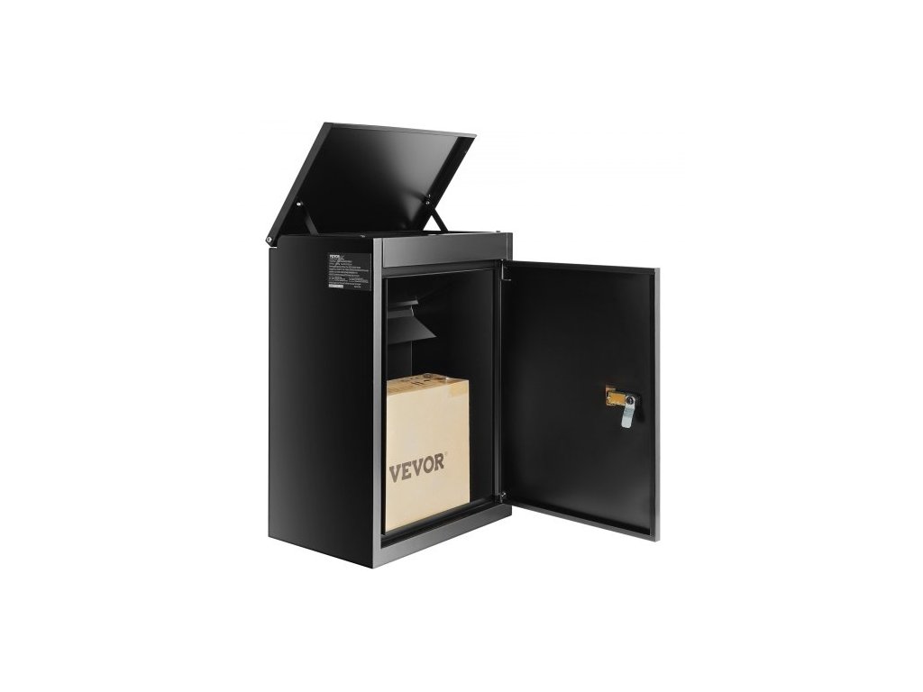 Velikost produktu: 15,4 x 10,6 x 20,5 palce / 39 x 27 x 52,2 cm, Barva: Černá, Velikost doručovacího slotu: 13,6 x 8 x 19,7 palce / 34,6 x 19,8 x 50 cm, Nosnost: 33-44 liber, Materiál: 0,8 mm pozinkovaná ocel, Maximální velikost úložiště: 13,6 x 8 x 7,5 palce / 34,6 x 19,8 x 19 cm, Typ zámku: Kódovaný zámek