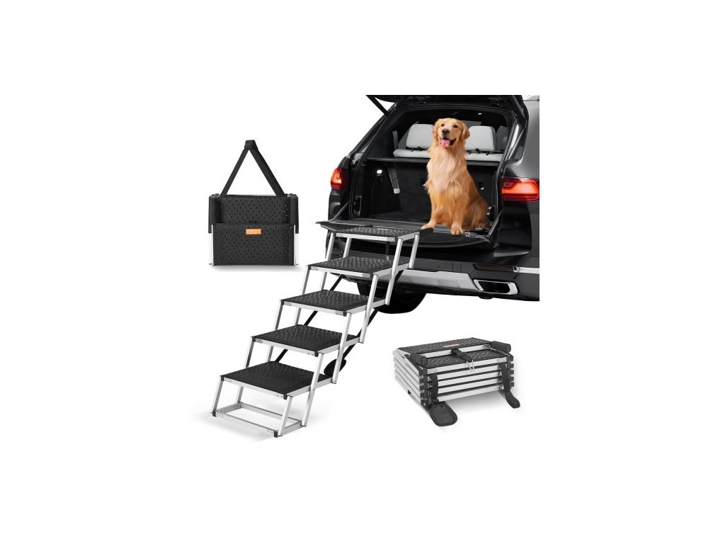 VEVOR Schůdky pro psy do auta 5-stupňové skládací hliníkové schůdky pro psa Nosnost až 150 liber5-stupňové skládací schody pro psy