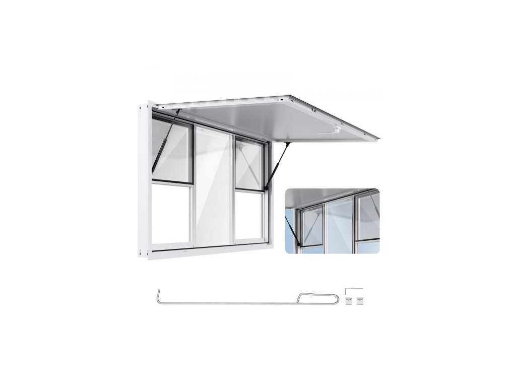 VEVOR Servírovací okno 152x92 cm, hliníkové slitinové servisní okno pro food truck, servírovací okno s úhlem otevření až 85 stupňů, 6 posuvnými okny, markýzou a tažným hákem, pro koncesní přívěsyHydraulická tyč