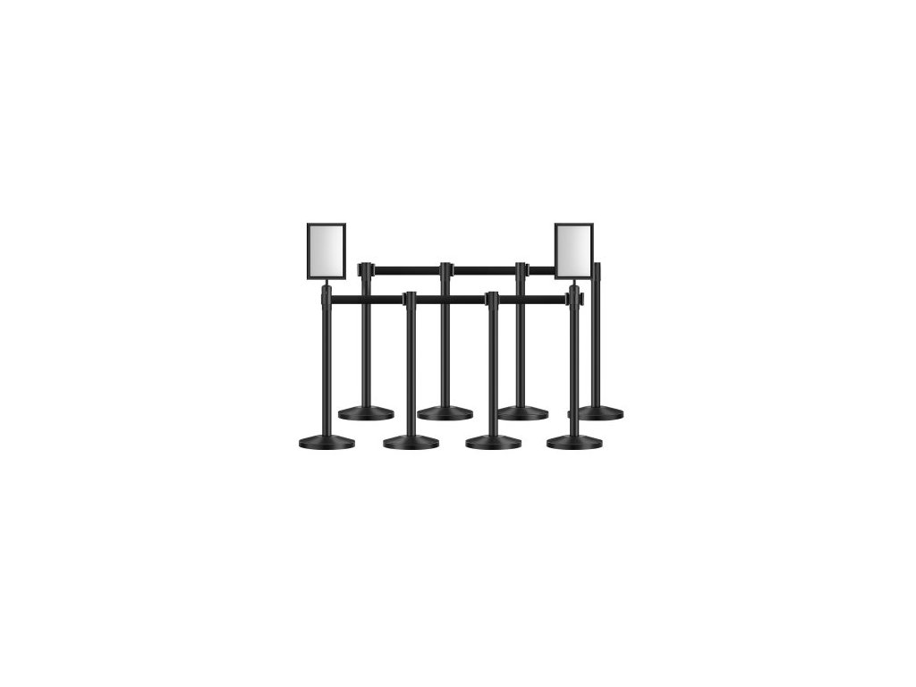 VEVOR Sloupky, 8 ks zábran pro kontrolu davu s 8 zatahovacími pásy a 2 držáky na cedule, fronta z uhlíkové oceli s dutou základnou z vstřikovaného písku pro divadlo, večírek, svatbu, výstavu