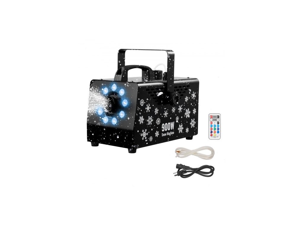 VEVOR Sněhový stroj, výkonný 900W, ruční/závěsný sněhový stroj s okolním světlem, bezdrátový dálkový ovladač na výrobu sněhových vloček s 1l nádrží na kapalinu, venkovní stroj na výrobu sněhových vloček na vánoční večírek