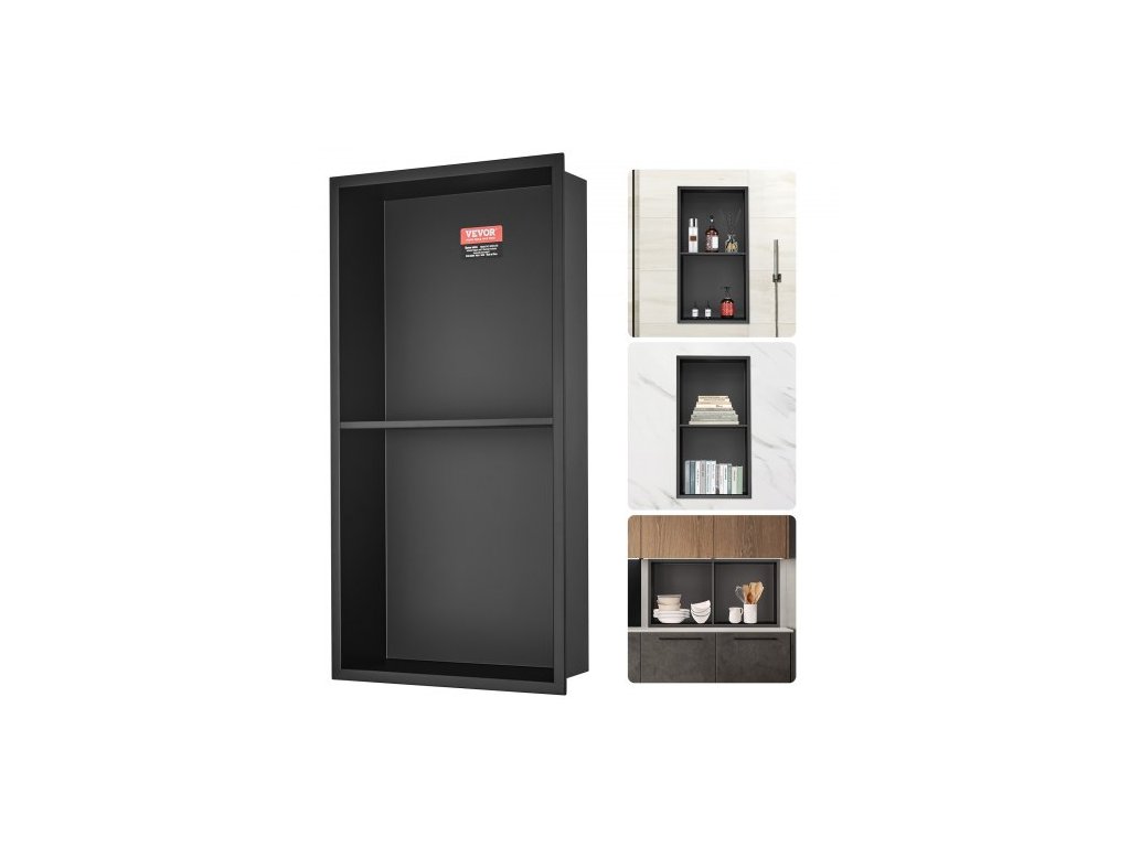 VEVOR Sprchový výklenek 33,02 x 63,5 cm bez dlaždic, nerezová ocel 304, zapuštěný do zdi, zapuštěné dvojité police, utěsněný, vodotěsný, odolný proti korozi, moderní výklenek do sprchy nebo na mýdlo, do koupelny