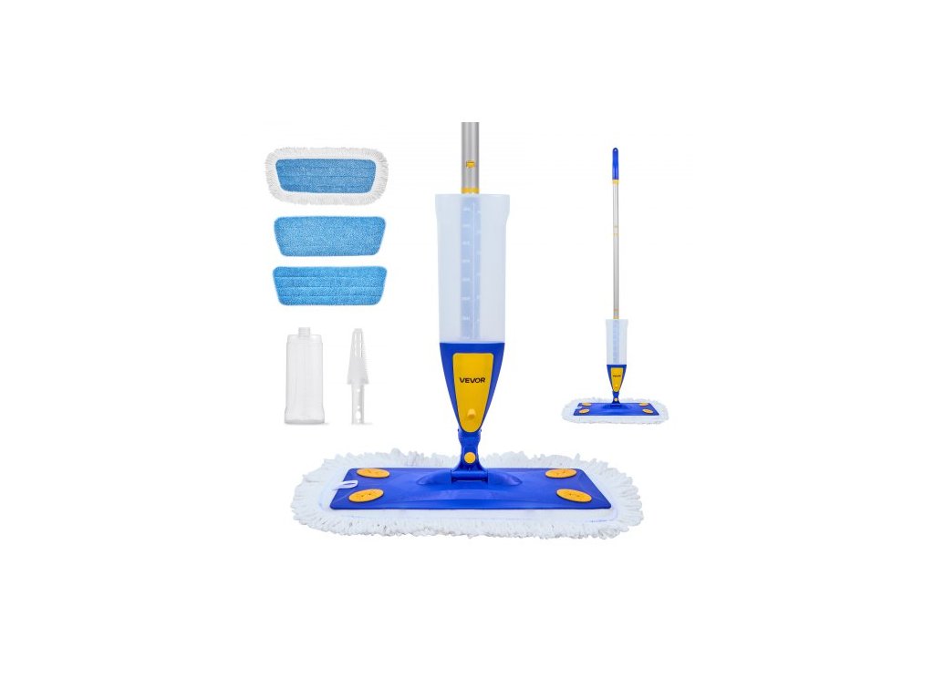 VEVOR Sprej Mop, se 3 omyvatelnými podložkami pro suché i mokré čištění podlah a 800ml plnitelnou nádržkou na vodu, mop z mikrovlákna na prach a mop z kroucené bavlny na suchý úklid, pro komerční domácí použití na dlaždice/vinyl/dřevěné podlahyMultifunkční sprejový mop