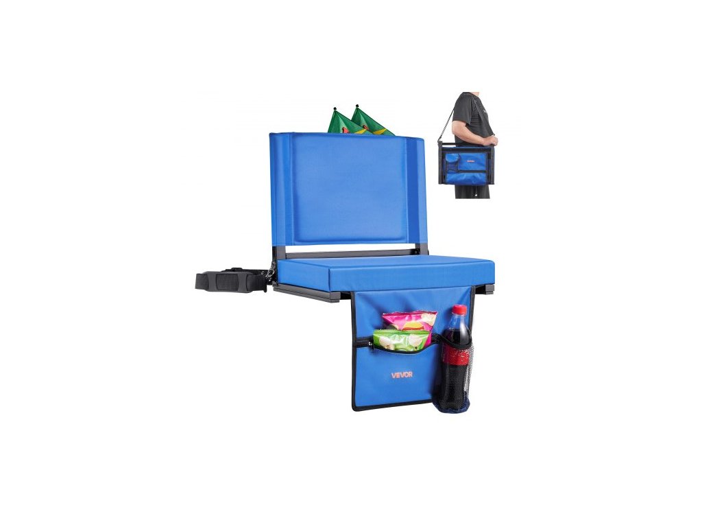 VEVOR Stadium Seat, Skládací židle na tribunu s opěrkou zad a silným polštářem, Polstrované sedadlo na tribunu, včetně ramenního popruhu, háčků, držáku na nápoje a boční kapsy, Modrá židle na tribunu