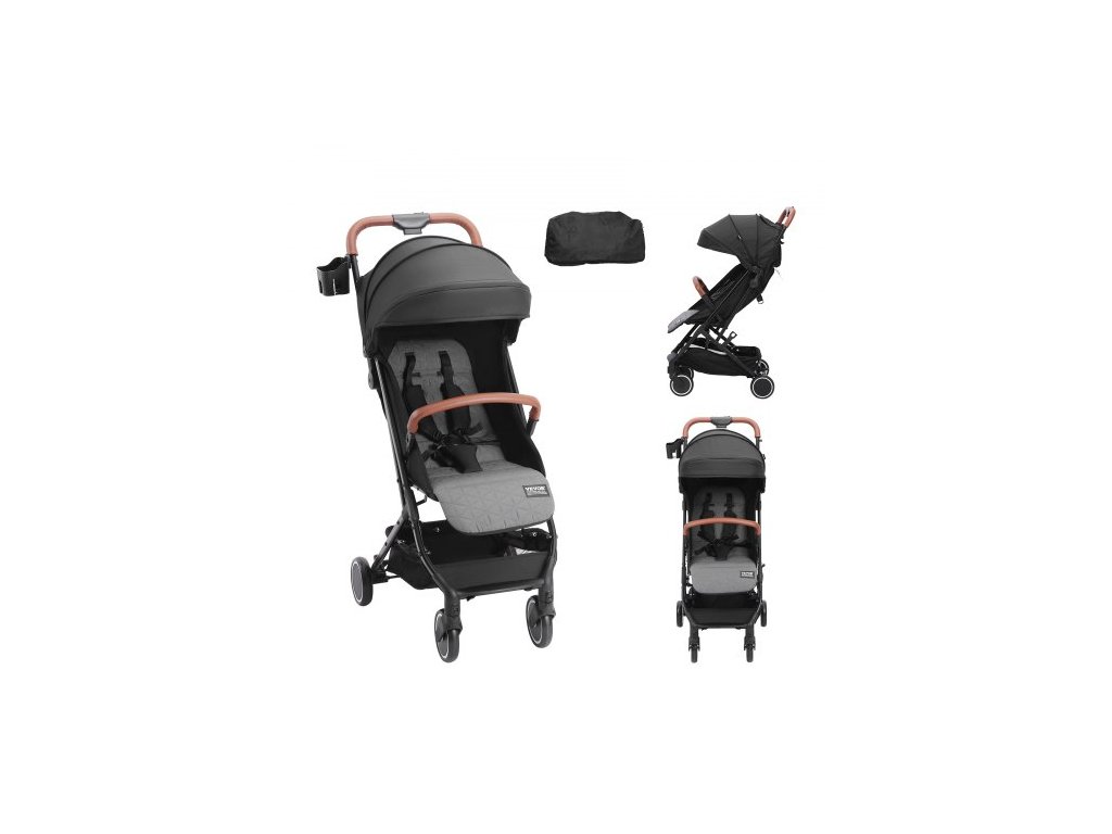 VEVOR Standardní kočárek pro kojence, kočárek pro batolata s nastavitelnou opěrkou zad 95°-175° a nastavitelnou opěrkou nohou 0/90° a skládáním jedním kliknutím, kočárek pro novorozence s držákem na nápoje a přepravní taškou, černý