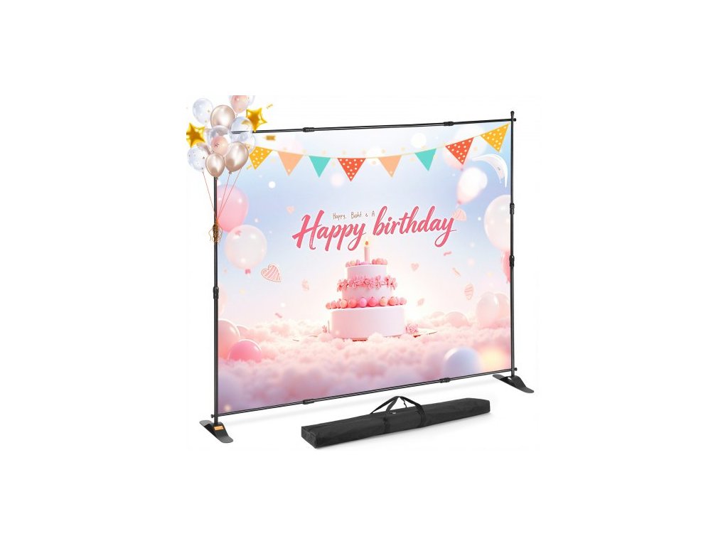 VEVOR Step and Repeat 8'x8'- 10'x8' Stojan na bannery na pozadí Nastavitelná teleskopická výška a šířka Výsuvný stojan na banner s taškou na přenášení
